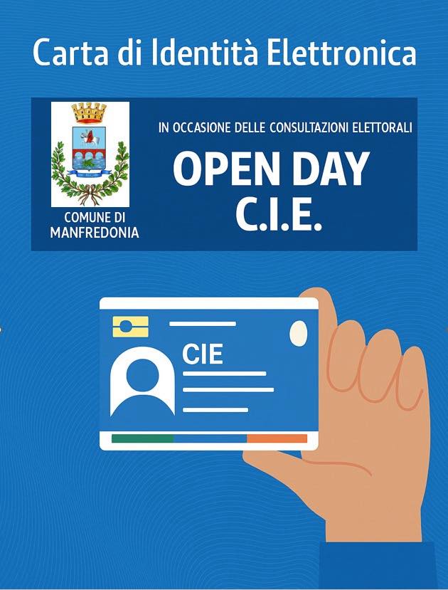 In occasione delle consultazioni elettorali dell’8 e 9 giugno 2025 l’ufficio preposto al rilascio delle carte d’identità sarà aperto al pubblico dalle ore 16.00 alle ore 19.00 anche nelle seguenti giornate: