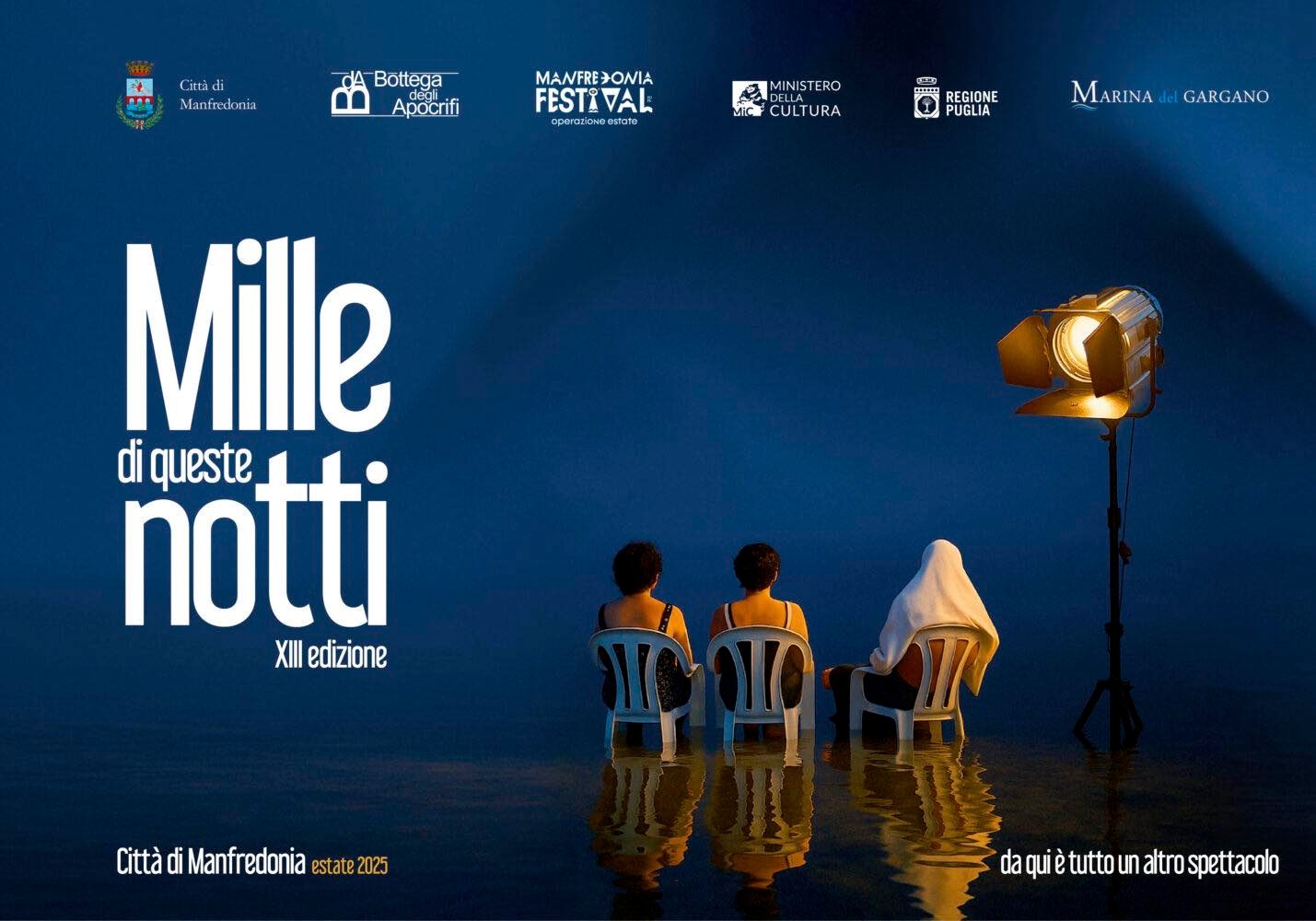 La tredicesima edizione, in programma dal 29 giugno al 24 agosto, si snoda sul mare e sceglie tre luoghi distinti del Porto Turistico di Manfredonia: l’arena teatrale all’ingresso della Marina, i nuovi spazi degli Apocrifi sul Molo di Ponente e la suggestiva passeggiata panoramica.