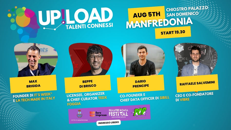 UP!LOAD nasce dalla volontà di costruire occasioni pubbliche di ispirazione e confronto: non un convegno, ma un talk seducente dove ascoltare storie vere di chi ha dato forma al proprio futuro partendo da sé, dalle proprie competenze e da una visione. Tra gli ospiti di questa edizione ci sono tre innovatori originari di Manfredonia e uno di Foggia, a dimostrazione di come la provincia possa generare percorsi capaci di raggiungere i più alti livelli dell’innovazione nazionale.