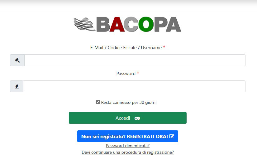 In relazione al bando in oggetto, si precisa che coloro che  sono già iscritti alla piattaforma https:// bacopa.it, (per l’accesso ad altre precedenti istanze) devono utilizzare lo stesso account da loro già precedentemente creato e inserito in piattaforma, pena la impossibilità di proseguire nella istanza.